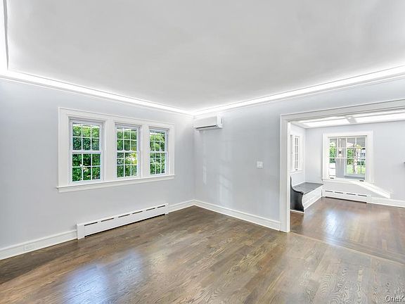 Welcome to an Exquisite residence where Craftsmanship meets Elegance. This property seamlessly combines high-end renovations w/ everyday practicality. w/ upgrades to include an all-new electrical system- 200AMP, new oak flooring. Radiant Heat flooring in kitchen & baths. Brand new plumbing system, along with smart kitchen appliances. 11 split units w/ 3 condensers. 8 ton system with heat pump. Along with a Gas Boiler providing baseboard heating. Inside, you’ll find high-end finishes, The Coffered ceiling in the living room and the Trey ceilings in Din. Meticulous craftsmanship, 2 enclosed, climate-controlled sunrooms, creating a peaceful space. The rear sunroom leads to the yard that opens to a serene & private yard . 6 Zone sprinklers. Newly paved entrance, a wide double-side driveway, & a spacious 2 car garage. Every detail reflects quality. Commuters will appreciate the Prox to the train, Cross Island Pkwy, & just blocks S. of Jericho Tpk , offering a mix of shops & dining. This is a must see in person!