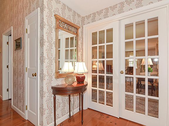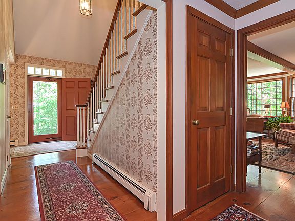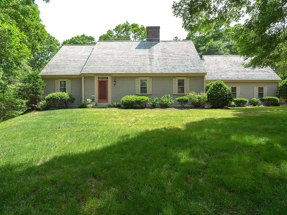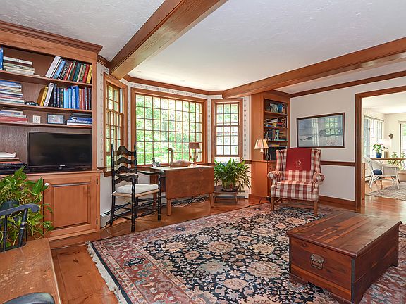 Magnificent custom-built Cape by Royal Barry Wills on acre lot in desirable Jacobs Farm Village. Enjoyed by original owners since 1985. The grand entrance sets the stage for this beautiful home. Attention to detail is undeniable from wide pine plank floors throughout, crown molding & wainscoting. Library with beams, bay window and built ins to relax & read. Bright Sunroom, with double French door sliders to deck, formal Dining Room with bay window, large country Kitchen with fireplace and 2nd slider to deck. Formal living room with French doors and fireplace, has enjoyed many years of piano playing & storytelling. Mudroom, Laundry and 1/2 bath complete 1st floor. At the top of open staircase is a front to back Bedroom that can easily be converted to 2 bedrooms (per original 4-bedroom design). There is a full bath, addt'l Bedroom and a spacious En-suite, with private full bath, 3 double closets and access door to large unfinished cathedral space awaiting new owners' vision. Attached 2 car garage. Spacious deck with awning and backyard abuts acres of conservation land, perfect for entertaining family & friends in a private setting. Full house Generator. 4 BD Title V.
