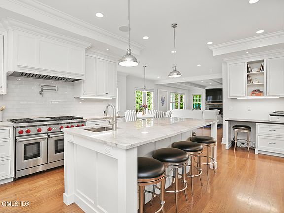 This is it - the location and home you've been waiting for in Riverside! Move right into this 2017 Shingle Style bright and sunny home that has been impeccably maintained with recent updates including; Sonos system, landscape lighting and new flooring in lower level. Beautifully appointed interior with 10 foot ceilings, chef's kitchen open to breakfast and family rooms with fireplace, butler's pantry, dining room, living room, two powder rooms and mudroom. Second level includes; Master Suite with dual walk-in closets, luxury bath and terrace, three en-suite bedrooms and laundry room. Lower level features playroom, bedroom, full bath and plenty of storage. Gated driveway, side entry with breezeway to detached two car garage, and generator. Fabulous location and walkable to train.
