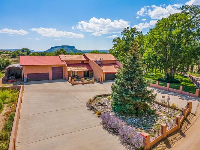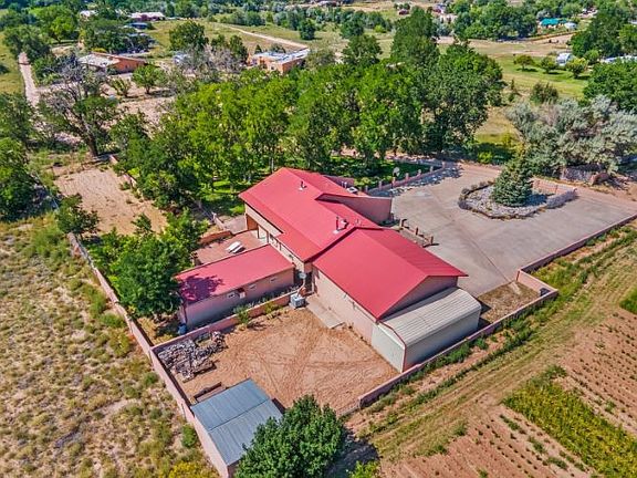 A MUST SEE! All offers will be reviewed by Sunday September 5th at 8am. Please schedule your showings and highest and best offers by Sunday. This stunning well constructed 2, 800 SF Two-story home offers 4 bedrooms and 2 living areas with 2 and 1 2 baths. Situated 4 miles from highway 285, off county road 399 on a private road in the beautiful community of La Mesilla. This spectacular custom home is complete with beautiful views of the Black Mesa, and the Sangre de Cristo and Jemez mountains. This home is in a secluded area of La Mesilla with mature landscaping and sits on 0.882 acres of beautifully landscaped flat land complete with a 40x16 sq. ft. studio casita, an over-sized 2-car attached garage and a 2nd 3-vehicle garage with a large bay capable of accommodating a motorhome. Lots of storage, and a fenced area for dogs or other animals. Conveniently located with an easy commute to Los Alamos and Santa Fe and a short distance from Black Mesa Golf Course. Perfect for summer parties with a grassed yard and patio. There are 2 wood burning stoves and a kiva fireplace to complement baseboard and forced air heating. A refrigerated air conditioning system will keep you cool on the hot summer days! The home is being sold by the first and only owners of this property. There is even an outdoor hot tub that is negotiable to transfer with the property!