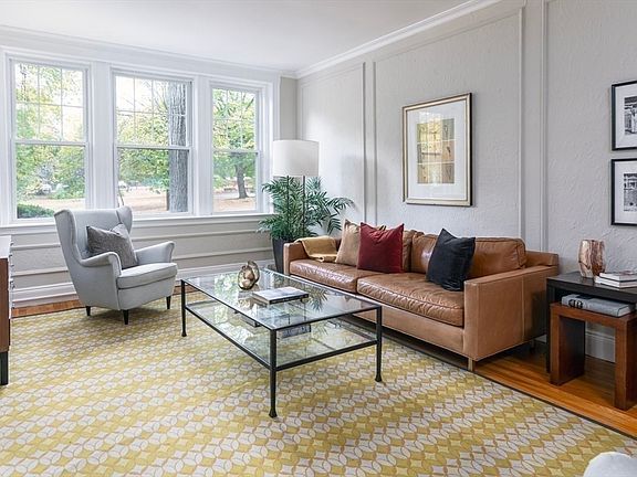 Overlooking Knyvet Park, this exceptional three-plus bedroom residence built by architect Frederic Albert Norcross in 1926 was thoughtfully designed & updated to offer abundant natural light, high ceilings, and lovely architectural details. A gracious foyer welcomes you, featuring a beautiful living room, elegant dining room, & den/bedroom - all framed with views of the park. The large kitchen, with quartz countertops & hardwood floors, offers flexible space for eating & relaxing. From the foyer & kitchen, you have access to 3 bedrooms, including a generously sized primary bedroom with two walk-in closets. The full bath, with separate shower & tub, is accessed from the primary bedroom as well as the hall. In addition, there is a half bath, in-unit laundry, replacement windows, private storage, & parking. This professionally managed residence nestled between the estates of Cottage Farm & Coolidge Corner, offers access to B & C Lines, Amory Park, Longwood Medical Area & downtown Boston.