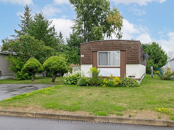 Welcome to Kenron Estates a peaceful, well-maintained park community offering the perfect blend of comfort and convenience. This 3-bedroom mobile home is an excellent opportunity for first-time home buyers looking to break into the market or those looking to downsize without compromising space. Situated just minutes from CFB Trenton and Highway 401, this home offers a prime location for easy commuting and access to local amenities. Inside, you'll find a layout with tons of potential ready for your personal touches and upgrades. Whether you're an investor or a DIY enthusiast, this home is a blank canvas waiting for a facelift. PLEASE NOTE:**Kenron Estates requires all homes to have a peaked roof with plans designed by an engineer and must be approved for a permit through the city. The responsibility for this update will fall to the new owner. Other updates that must be completed by the new owner with a date given by the park in 2026: Remove and replace all decks and steps, Paint or replace all siding, recommended to replace old windows, Repair and straighten all skirting around the home, Shed will need to be moved 39" from property line.**