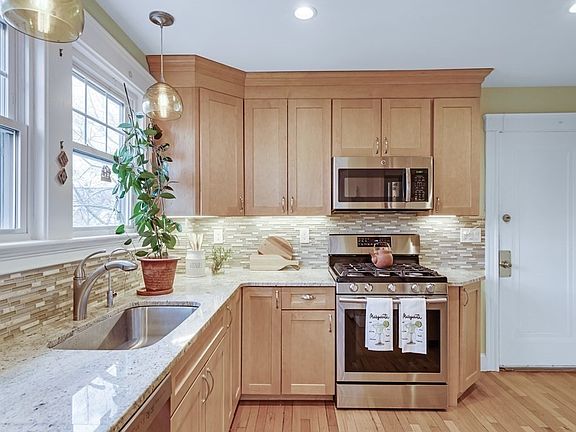 Spectacular duplex home on one-way side street in Brookline Village. The main level features a spacious open living and dining room, renovated kitchen with SS appliances, gas cooking, granite countertops, maple cabinets, two bedrooms or bonus rooms, a sunroom/office and a full bath plus a 1/2 bath with laundry. There is also a pretty deck off the kitchen. Upstairs are 2 additional bedrooms, a new full bath and bonus room. Additional features include, hardwood floors, new windows, C/A, one car garage parking, additional storage in basement and a small common yard. Pet friendly for one dog or two cats. Located near Linden Square Park, Longwood Medical Center, Green Line D Trolly, Route 9 and Brookline Village. Easy access to shopping, restaurants, major highways and downtown Boston.