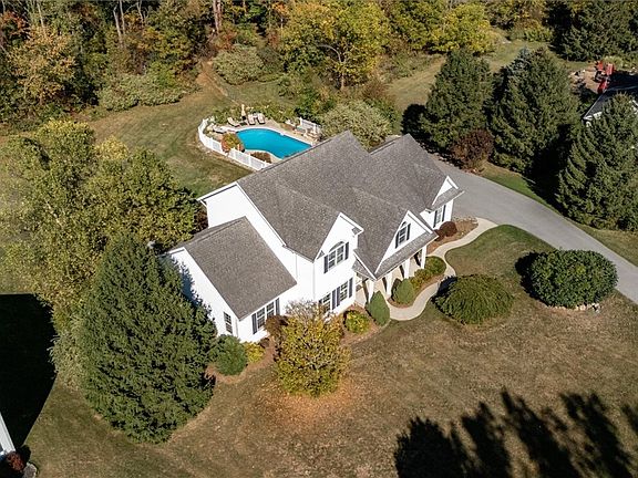 Step outside to your private backyard oasis, featuring a heated in-ground pool, covered porch, stone patio, and wooded backdrop — the perfect setting for both quiet mornings and lively summer gatherings.