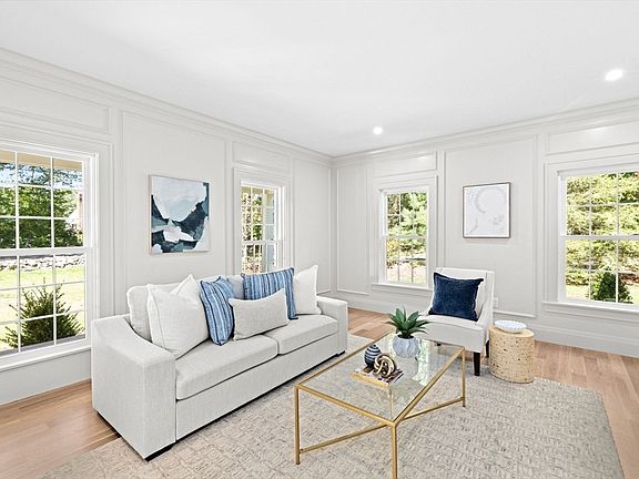 Built by a well-known & highly respected Hingham builder, this brand-new home showcases exceptional craftsmanship, attention to detail & thoughtful design for today’s lifestyle. Step inside to a spacious open floor plan featuring high-end chef’s kitchen with custom cabinetry, a walk-in pantry & large center island that flows seamlessly into dining area with built-in cabinets, beverage fridge & sliders that leads to a 16’ x 16’ deck overlooking private backyard—perfect for entertaining. The stunning family room boasts a cathedral ceiling, gas fp & shiplap detailing, while the elegant living room is enhanced by custom moldings & built-in shelves. A generous mudroom with closets & bench connects to oversized two-car garage. Upstairs, the luxurious primary suite offers two walk-in closets & a spa-like bath with a walk-in shower & double vanity, 2 additional BRs & sunny office/flex space provide extra room for family & guests. Finished lower level with game room, media room & 1/2 bath.