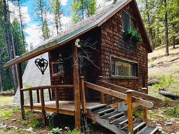Incredible opportunity for an off-grid cabin on 9.45 acres. Relax & unwind in this woodland retreat, with a year-round creek. The 1 bed A-frame has a cozy sleeping loft. The living room has vaulted ceilings with an open floor plan and perfectly placed windows for natural light. Cabin is wired for a generator. Well produces 5-8 gpm. Property features a fenced garden, beautiful meadow, and views of the forest. Two outbuildings offer additional storage and an outhouse. Conveniently located near a country store for essentials + meals at the nearby restaurant. Outdoor enthusiasts will love fishing, hiking, mountain biking, or exploring the great outdoors. Use as a private retreat or for Airbnb potential, this property has endless possibilities!