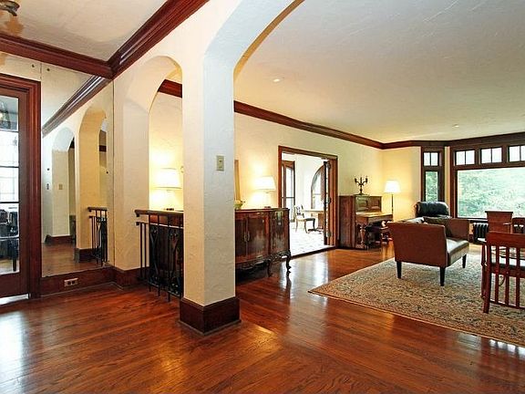 :Impressive Estate Section Tudor combining well-preserved original detail & updates. NYC view. Terrific lower level family room-full kitchen leads to incredible 10,000 sq. ft. patio, bar, amphitheater, hot tub. Hardwood! Inside, spacious 1st fl incl bright, windowed sunroom & charming library, breakfast room. Central Air Conditioning on 1st floor & lower level; large master suite with windows on 3 sides, walk-in closet, his/hers baths; grand total of 3 full baths and 2 half baths. Great attention paid to preserving infrastructure, systems. New large capacity hot water heater, new exterior painting, new gutters, new sump pumps, new garage doors, new Central Air compressor, newer 8-car paver drive w/retaining walls, newer furnace, in addition to new 3rd fl bath, new in-FP stove/liner/fan. Lower Level granite kitchen, powder room, bar and den, new Stainless Steel appliances in main kitchen with breakfast bar. Outdoor shed with electricity and lighting. Attached 2-car garage in super condition.