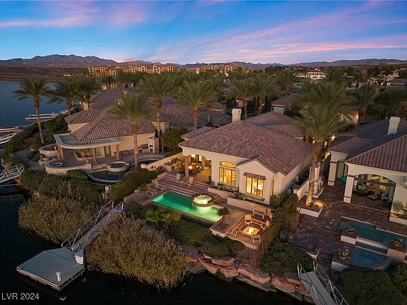Experience breathtaking views from this lakefront retreat in the guard-gated SouthShore community at Lake Las Vegas. The open-concept design offers a spacious living, kitchen, and breakfast area; all with expansive windows that capture stunning lake and mountain views, creating an inviting setting for relaxation and entertaining. Each bedroom in this elegant home, including the casita, is en-suite, providing privacy and comfort. The backyard oasis includes a private dock with direct lake access, ideal for water activities.