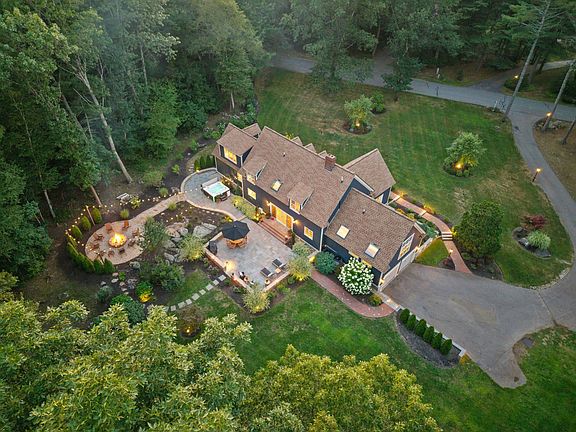 Situated in a beautiful cul-de-sac neighborhood is this impeccable cape style home on just over 2 private acres.From the moment you approach this home you will understand just how special it is.Having been thoughtfully cared for & exquisitely updated over the years, it is truly one of a kind on the Seacoast. With breathtaking curb appeal, stunning grounds & interior detail throughout it is an honor to call this "home".The back yard is a dreamy oasis w/ an expansive blue stone patio, stone walls, tiered entertaining spaces w/ relaxing fire pit to gather, state of the art hot tub lit w/ bistro lights; there is no shortage of impeccable taste that went into the landscape.Step inside after having relaxed on the front farmers porch enjoying the lush professional landscape & you are greeted w/ incredible taste. The open concept floor plan boasts rich amenities & utility throughout.The lower level boasts a large front to back living/dining space w/ new gas fireplace & lit built ins, a large daylit eat in kitchen w/ high end stainless appliances & relaxing seating area to watch tv as you cook & entertain.The bonus is the large space that could be used as a family room or space for guests to sleep w/ murphy bed & attached bath all on the 1st floor.Upstairs are 4 bedrooms including a gorgeous Primary w/ 2 offices & laundry w/ multiple walk-ins.And the finished basement has a workout room and family room. So many updates & upgrades! Great commuter location to 95, 101 & the NH beaches.