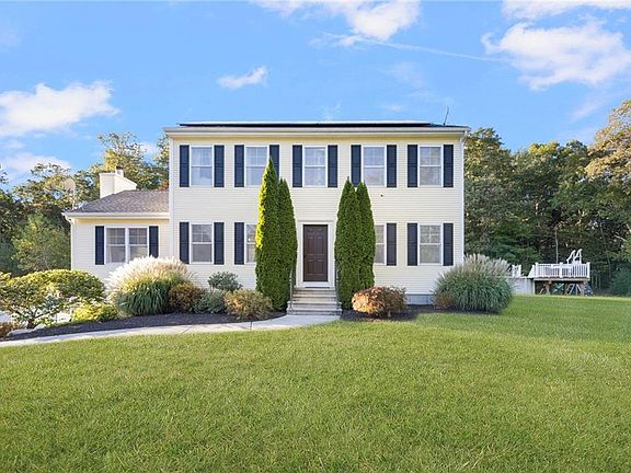 Welcome to your peaceful 7.33-acre retreat, complete with everything an equestrian could ask for. This 3-bedroom, 2.5-bath open-concept home offers 2,144 sq ft of comfortable living space surrounded by nature and privacy. The first floor provides plenty of room for everyday living, with a spacious kitchen, private den, dining room, half bath, and a formal living room with a cozy fireplace. Upstairs, the large and sunny primary bedroom with ensuite bath is joined by two additional bedrooms, laundry room and a second full bathroom. Outside, you’ll find a well-appointed 4-stall barn with hay storage, grain and tack rooms, and individual run-ins, along with a 20x40m dressage arena with automatic waterers. A chicken coop adds that perfect country touch. Enjoy energy efficiency with solar panels that cover about 95% of the electric bill. Additional features include central AC, propane heat, a wood-burning fireplace, water filtration system, and a mud room. Step outside to a beautiful patio with a fire pit, mature landscaping, fruit trees, and a 24’ above-ground pool with a deck, perfect for summer fun. All this tranquility is just a short drive from major destinations: 40 minutes to Providence, 1.5 hour to Boston.