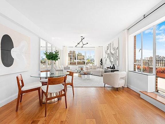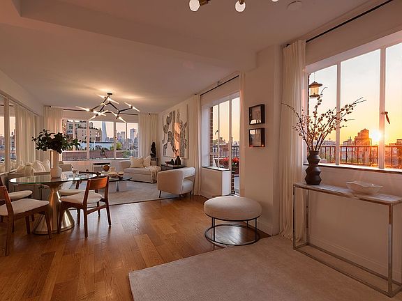 Situated high on a sunny, south-west corner, this spellbinding apartment is considered the crown jewel residence of 15 West 12th Street. Awash in sunlight, the property features a spectacular corner exposure living room with magnificent views of Greenwich Village and the downtown Manhattan skyline including the Freedom Tower. Just off the living room, floating high above the neighboring townhouses, is a spectacular landscaped terrace measuring over 40 feet in length and more than 10 feet wide. The views from the terrace of both the sunset and the glittering nighttime city skyline are sublime.