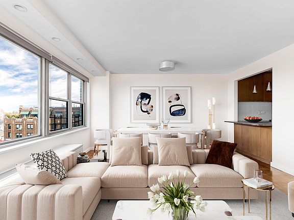 Enjoy move-in ready environs and breathtaking views in this spacious, convertible two-bedroom, one-bathroom residence in a full-service, Upper West Side co-op just inches from Central Park's most iconic attractions. Perched high on the 20th floor, this exceptional home greets you with a wide expanse of north-facing windows that skim over historic rooftops. Gleaming hardwood floors and 8-foot-tall ceilings fill the bright and airy living/dining room. Head to the superb, updated kitchen to find sleek cabinetry, stone counters, glass tile backsplashes and top-notch appliances, including a Viking range and a dishwasher. The breakfast bar adds convenient casual dining space. The bedroom boasts more northern outlooks, a king-size layout and a massive walk-in closet, and the adjacent bathroom is the picture of modern design with its large-format, floor-to-ceiling tile, floating vanity and glassed-in tub/shower. A gracious foyer with a coat closet and in-unit washer-dryer complete this pristine residence. Currently configured as a one-bedroom home, this expansive A-line layout can easily accommodate the addition of a second bedroom or spacious home office. Mayfair Towers is a postwar cooperative situated where The Dakota's gardens, croquet lawn and tennis courts once stood. The pet-friendly building offers 24-hour doorman and concierge service, live-in resident manager, laundry on every floor, a fitness center, a lovely roof deck, courtyard, children's playground, bike room and an on-site parking garage. Subletting, pieds-à-terre, parents buyers and co-purchasing permitted with board approval. From this outstanding location near the corner of Central Park West, you're directly across from many of Central Park's most beloved features, including Strawberry Fields, The Lake, Bow Bridge and Bethesda Terrace. This prime Upper West Side neighborhood is surrounded by the city's best gourmet stores, shopping, restaurants and Lincoln Center entertainment. Enjoy abundant transportation options, including B, C and 1/2/3 subway lines, excellent bus service and nearby CitiBike stations.