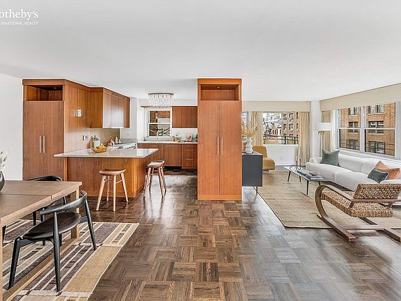 Residence 7C at Mayfair Towers is a prized northwest-corner two-bedroom, two-bath cooperative with a private balcony and an effortless indoor-outdoor flow. Framed by a wall of windows that capture open city and townhouse vistas, this sun-splashed home is tailor-made for both gracious entertaining and quiet retreat.