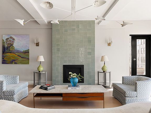 Gut-renovated by the current owner, an artist and interior designer, the residence combines historic Art Deco character with modern luxury, showcasing wide-plank rift and quarter-sawn white oak floors, a hand-etched Rookwood tiled fireplace, and an in-unit Miele washer and dryer.