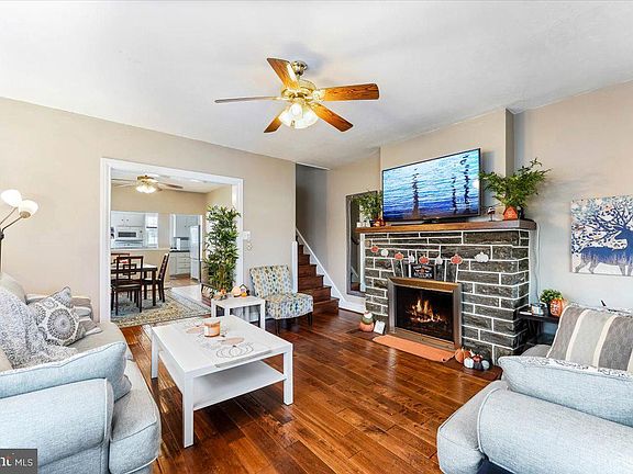 Spacious twin home in convenient location. Enjoy the open front porch which leads to a large living room with new gas insert, stone fireplace . Newer hardwood floors in Living room and dining room. The kitchen has plenty of workspace, gas range and outside exit to large fenced back yard with new shed for extra storage. Private drive. 3 large bedrooms with nice closets. Hall bath. Replacement windows throughout. The basement has a finished rec room area, laundry and Bilco style doors to back yard. Extra work space, work bench. Convenient to transportation, stores , schools, and parks.