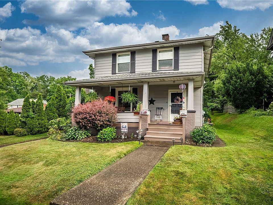 Charm abounds in this two story Sharpsville home. As you enter into the large foyer, you'll appreciate how well this home has been cared for. The original woodwork has been beautifully maintained. The updated kitchen has Kraftmaid cabinets and all appliances are included. The large formal dining room has a window seat with storage and hardwood floors. There is abundant natural light in the spacious living room and also hardwood floors. There are two full baths, one located on the main level and one on the second floor. The covered back deck overlooks a large private back yard which extends to the alley in the back.. The basement is clean and has glass block windows. The windows throughout the home have been replaced but kept some of the elements of the original windows that add so much character to this home.. The newer roof is approximately 5 years old and AC is 10 years old.