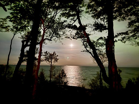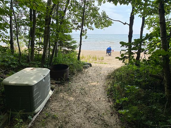 Wildwood Lane in Brevort, MI, is one of the most desirable areas to buy right now! Lake Michigan Waterfront vacant lot has the best (relatively level and very accessible) not to mention one of the largest buildable areas, WITH a most adorable shabin! Shabin has been professionally wired and runs off a propane generator. Shabin is 160 ft (10x16) and has sleeping accommodations for 3 adults. Shabin is not plumbed but includes a camping toilet. This lot also has the best access to the beach without having to build and permit a huge staircase... it has state forest across the street (no neighbor that direction) and to the west the neighboring property cannot build within sight, so it is one of the most private lots. Building is personal property