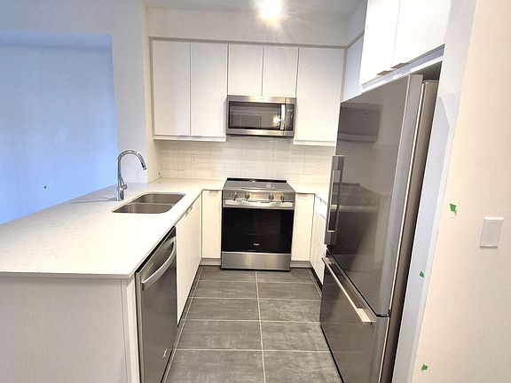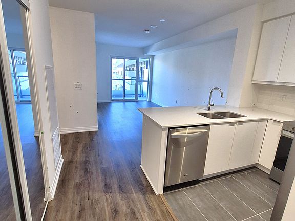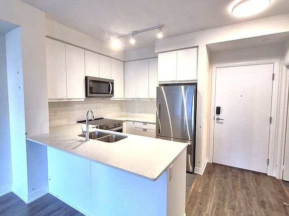 Welcome to this brand new stunning condominium offering a bright and spacious open-concept layout. The suite features a modern kitchen with quartz countertops, stylish backsplash, and stainless steel appliances, seamlessly flowing into the living area with walkout to a private 109 ft balcony. The bedroom includes a spacious closet, while the versatile den is ideal for a home office or study. In-suite front-loading laundry adds convenience. One parking space and one locker are included in the rent. Enjoy access to premium building amenities, including a fitness centre, party room, and 24/7 concierge with security. Conveniently located near GO Transit, the upcoming LRT, and with quick access to Highways 401, 403, and 407