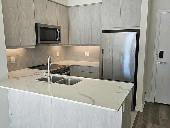 Brand New 1 + Den Bedroom Condo at Gemma by Pinnacle Never lived in, this stylish podium-level suite features modern finishes throughout including laminate flooring, sleek kitchen with stainless steel appliances, backsplash, and ample cabinetry. Comes with 1 parking & 1 locker for your convenience. Built by Pinnacle, this condo sits at the prime Hurontario & Eglinton intersection directly across from the upcoming LRT, steps to shops, plazas, restaurants, and minutes to major highways, Square One Mall, and Sheridan College. Students welcome.