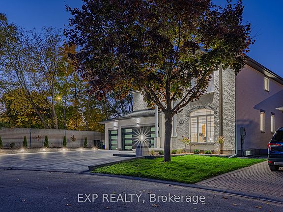 Nestled along the tranquil Rideau River in a private and peaceful community, this stunning 6-bedroom, 4-bathroom corner-lot single home awaits your visit! Completely renovated and upgraded throughout, the main floor features a bright formal living room, elegant dining room, cozy family room, private office, and a modern kitchen with full-height custom cabinetry extending to the ceiling. Upstairs, the spacious primary suite boasts a fully outfitted walk-in closet and a luxurious 5-piece ensuite bathroom. Three additional large bedrooms all have double closets. The fully finished basement offers a comfortable recreation area-perfect for winter gatherings or children's playtime. Plus two additional guest bedrooms, providing ample space for multi-generational living.The front and back yards have been newly interlocked and enhanced with built-in lighting, creating an elegant evening ambiance. Custom blinds installed throughout the property. Don't miss this rare gem along the Rideau River - a perfect blend of modern luxury and timeless charm!