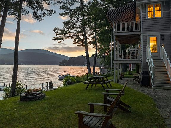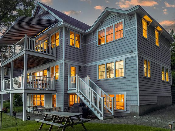 Lovely multi-level Winnipesaukee waterfront home on a great south west facing lot. The original home was torn down in 2012 and this beautiful home took it's place. The upper floor has an open living, kitchen and dining with hardwood floors and a gas fireplace. Sliders take you out to a large deck overlooking the lake with an automatic awning. There is a main floor primary bedroom with bath w/walk in tile shower and spacious walk in closet. One level down there is a family room with kitchenette, would make a nice guest apartment, there are 2 bedrooms, a bath, laundry and another big covered deck. The lower level is set up for fun, with an English pub style wet bar, a media space, a large pool table room and 1/2 bath and sliders out to a patio. There is a flat expanse of lawn for play and relaxation, a short set of stairs into a crystal clear sandy swim area. A seasonal dock with plenty of room for multiple boats. The property is in an area protected from the prevailing NW wind and looks across to Mt Major and the Belknap Mountain Range with glorious all day sun. An easy location by boat or by car is just a quick trip to either Wolfeboro or Alton. Close to skiing at Gunstock, hiking, shopping, restaurants, hospitals and the highway for commuting. Here is your new home all set up for year round fun. Being sold with most furniture.