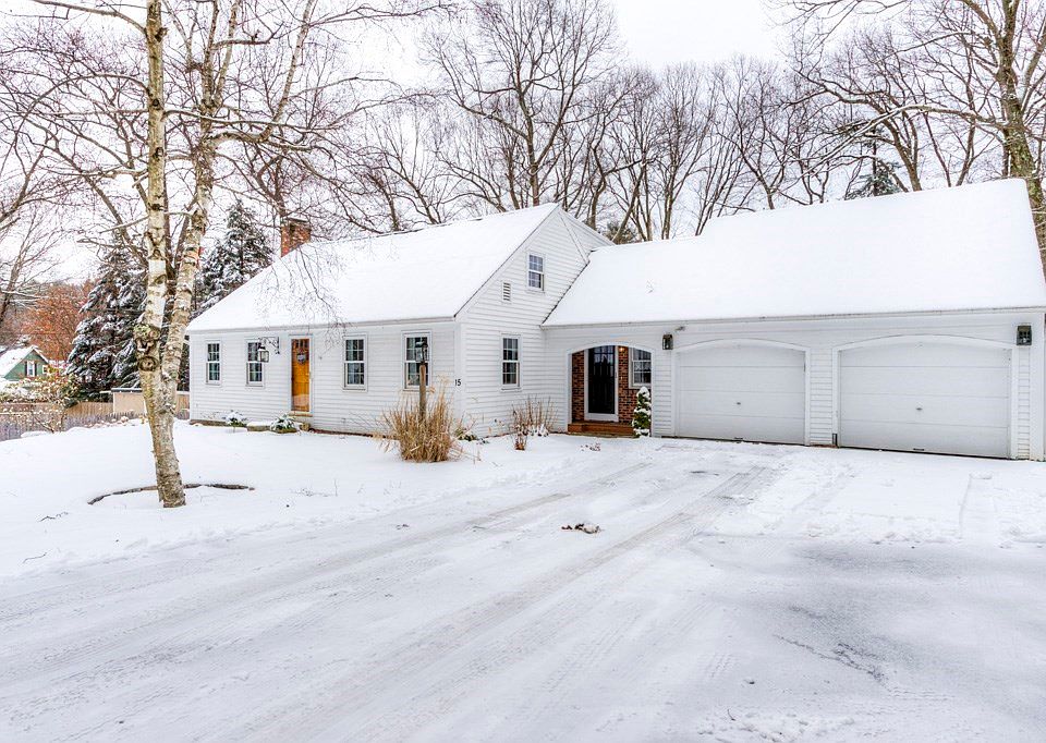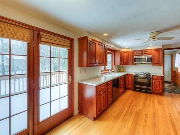 New England Cape offers very nice circular floor plan with very spacious rooms. Lots of natural light and tree lined level back yard. 2-car attached garage with storage above, with potential for 2nd story. Enclosed breezeway greets you with ample room for coats and boots! The remodeled, oversize kitchen boasts corian counter tops as well as the undermount double sink. Recessed lighting, hardwood floors, a custom designed secretary with beautiful stained glass cabinetry, and fully equipped kitchen. Also a remodeled 1/2 bath off the kitchen. Large doorway to a front to back Living Room-Dining Room combination is accented by a beautiful fireplace and lots of natural lighting. Den or home office on the main level is also nice size and has hardwood flooring with a closet and fan. Upstairs offers 3 bedrooms, hardwood flooring in every room and a remodeled full bath with a jetted tub-shower combo. Family Rm has a fireplace and access to the exterior. Workshop and utilities in unfinish area.