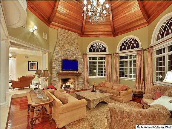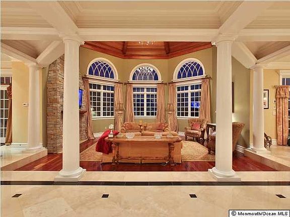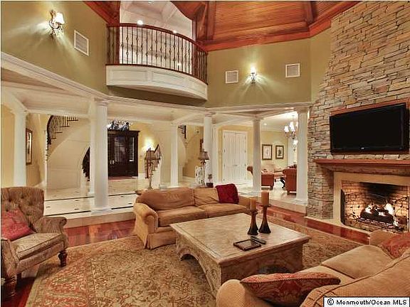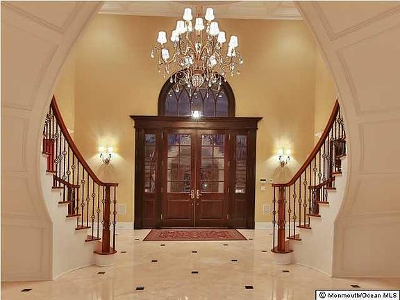 Drive past the front gate to this stunning home that has you wondering if you're dreaming. Through the 12' doors is the elegant 2-story foyer w/ a double staircase. Built in 2005 on 4+ acres, with an open floor plan, makes this home perfect for entertaining with family and friends. Beautiful architectural details are apparent throughout this inviting home. 2-story family room features mahogany vaulted ceiling and stone hearth fireplace, which opens to the spacious kitchen with dual appliances and butler's pantry. Bedrooms are en-suite w/ walk-in closets & built-ins. Lower level features a wine cellar, gym, full bath and more. Lutron system, radiant floors, cabana, pool & spa, 7-car garage & generator. NYC ferry 5 min drive. Rm sizes/s.f. approx. Middletown Twp w/ Atl. Higlands zip 07716.