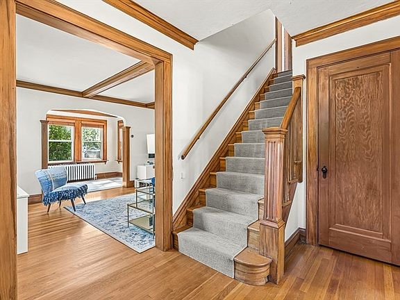 This charming Bellevue Hill home has been thoughtfully updated for today's lifestyle. The interior showcases architectural details including a gum-wood staircase & trim, crown moldings, & gleaming wood floors. The main level has a front-to-back living room with beamed ceiling & fireplace, opening to an office, & a formal dining room with a coffered ceiling & built-in china cabinets. The kitchen, outfitted with stainless steel appliances, maple cabinetry, & gas cooking, has access to a deck & landscaped fenced yard ~ perfect for outdoor entertaining. A half bath completes the first floor. The second floor offers 3 generous bedrooms including a primary bedroom with office/dressing area, a shared bath; walk-up attic; & walk-in expansion potential over the attached garage. Unfinished basement. Updates include replacement windows, 2025 electrical updates, 2011 roof, & certified de-leading compliance. Easy access to restaurants, shops, commuter rail, & Arnold Arboretum.