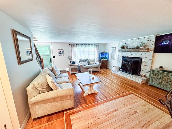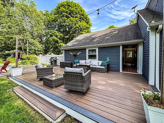 Stunning Cape Cod style home on dead end cul-de-sac in prime location. Updated cabinet packed kitchen, stainless steel appliances, granite, coffee station and so much more. Open to the dining room with cathedral ceilings, a sizable cozy living room with pellet stove insert, sliders to the huge backyard, gorgeous hardwoods, and 2 bedrooms and full bath on the 1st floor. Two generous sized bedrooms upstairs with another updated, full bathroom. A relaxing backyard oasis with in-ground saltwater pool, patio area for entertaining, large deck, and new septic system to be installed prior to closing