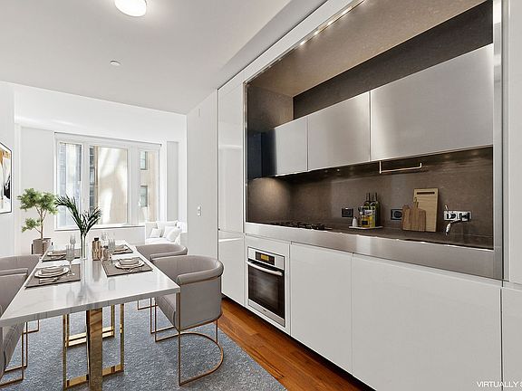 Great central location this contemporary residence features 10 feet ceiling heights, warm Burmese Teak flooring throughout, a built-in home office, washer/dryer, multi-zone climate control system providing heat and AC all year round, Top-of-the-line finishes include an open chef’s kitchen with custom designed white lacquer and stainless steel cabinetry, Ceaser stone counter and backsplash and Blanco stainless steel sink with Vola satin nickel faucets, a Sub Zero refrigerator, and Miele dishwasher, gas range and oven. The apartment features California closets and a rental tenant thru August of 2026 paying a rent of $4995. Unrivaled amenities include a resident’s penthouse lounge with wraparound landscaped terrace, playground, professional screening room, covered dog run, onsite valet parking. The building also provides Abigail Michael’s concierge services. Nearly 20,000 square feet of space is dedicated to fitness and exercise including a natural light filled fitness center with state-of-the-art strength and cardio equipment, indoor 50’ heated saltwater lap pool, outdoor hot tub, sauna and steam rooms, outdoor basketball, indoor squash court and yoga studio. 15 William Street is a 47-story luxury high-rise in the heart of the Financial Area, surrounded by architectural jewels of the past centuries, chic shopping destinations, sumptuous dining, and all that Downtown’s most exciting neighborhood has to offer. The building is close to many transit options:
