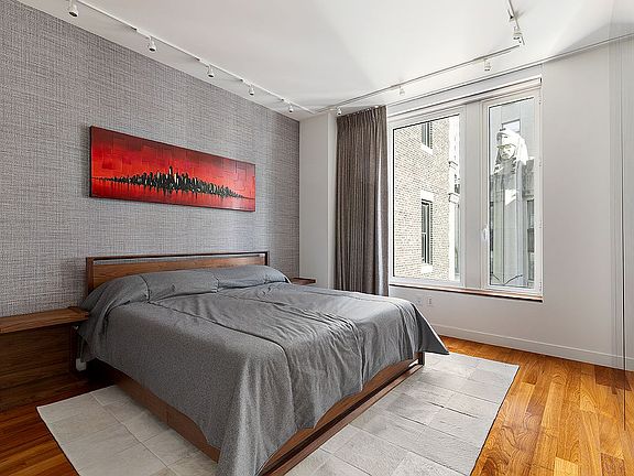 This light-filled 1373 sqft apartment with 9'6" ceilings has incredible separation of space with a layout that spans both east and west offering a separate dining and living area. The split bedrooms enable privacy and both bedrooms have abundant closet space outfitted by California Closets. In fact, the primary bedroom has been redesigned with 3 closets, two being walk-in closets. The primary en-suite modern bathroom features custom wood cabinetry, a quartzite vanity, and a large walk-in shower. The 2nd bedroom and bath are located on the other side of the apartment. This bedroom has a newly installed Italian designed desk which comes down as a Murphy bed. Accessed off the hall the 2nd bath has a tub shower as well as wood cabinetry and a quartzite sink. There are new AC units, strip wood floors, and the apartment has custom lighting throughout.