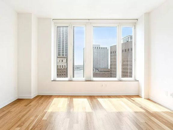This gorgeous and contemporary 1 bedroom 1 bathroom residence features 812 sq. ft. of gracious living space and expansive 8'2" double-glazed windows, flooding the apartment with light. The open chef's kitchen boasts custom designed cabinetry, Caeserstone counter and high-end appliances. The luxurious master bedroom suite offers stunning views and oversized double closets. The windowed master bath is a true sanctuary and includes a deep soaking tub, a separate rain shower and Toto Carolina water closet enclosure. Residents of 15 William Street have access to an unparalleled set of amenities including 24 hour attended lobby, Penthouse Sky Lounge/Terrace, Children's playroom, fitness center, yoga/Pilates studio, squash court, 50ft. lap pool, hall basketball court, outdoor hot tub, covered dog run and valet parking.