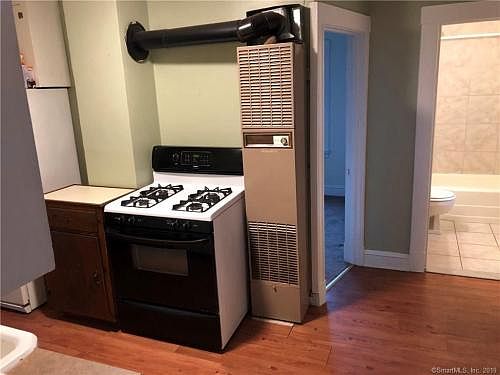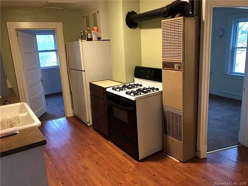 Clean 2nd Flr apt with Gas heat, hot water & cooking.(some room spaces electric heat. Separate Laundry hookups are in basementGreat enclosed back porch with storage shelves. Huge LR and good sized BR's. Plenty of Parking.OPTIONAL: Garage space with electric (400sq' 20'x20' 2 bays and Loft For Rent by Apt.occupant/s only for Additional $250 per month. Big level back yard and apt. is on the busline and short walking distances to Dunkin, CVS(across the street, Rockville Hospital, 7-11 Store, restaurants,etc.