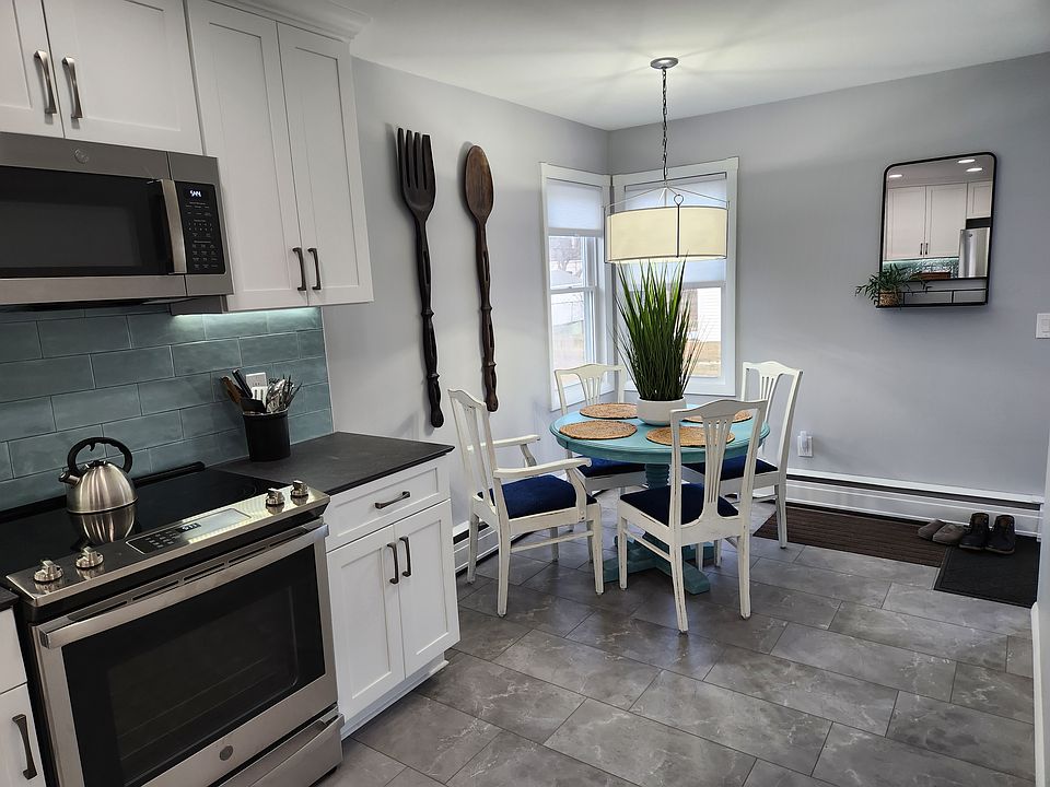 Inside, everything's been updated: a new kitchen with Dekton countertops, new cabinets, modern appliances, a walk-in shower, and solid interior doors that give the whole home a nice, quality feel.