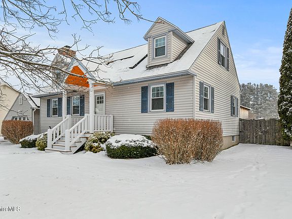 Welcome to this meticulously maintained Cape-style home, the home you have been waiting for! The first floor features a stunning updated kitchen, complete w/ granite countertops and radiant heating in the flooring for that extra touch of comfort. Relax in the cozy living room, highlighted by a wood-burning fireplace. The first floor also includes a spacious bedroom and a full bathroom, along with the convenience of a first-floor laundry. Every detail in this home has been thoughtfully curated to enhance its charm and livability. Some of those highlights are the crown molding, gleaming hardwood floors, and custom interior window shutters. Upstairs you will discover two additional bedrooms with so much character accompanied by a full marble bathroom featuring a jetted tub. Step outside to your very own backyard oasis! The level yard is perfect for entertaining, boasting a heated inground pool a large deck, a custom bar area, and even an outdoor bathroom for added convenience. Additional storage is available with two storage sheds and an oversized one-car garage. This home is definitely not a drive-by! Don't miss the opportunity to make it yours!