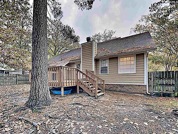 This 3 BR, 2 full bath, is 1,264 s.f. and is located in the neighborhood of Harbison--assigned to desirable schools of Irmo M.S. & H.S. Walking trails at end of street, and rec center, hospital, & malls are 3 minutes away. Living room has a beautiful brick hearth and is open to a large adjacent room that could be used as either a spacious dining room or even a second den. Kitchen has a galley-style kitchen with all appliances and a breakfast area for dining with lots of natural light. Master bedroom has a private bath and the other two bedrooms share a full bath. The rear yard has a fence and an outbuilding. Enjoy relaxing on the rear deck. Conveniently located between Broad River Rd. and I-26. Joel Taylor builders did the majority of the rehabilitation of the property.