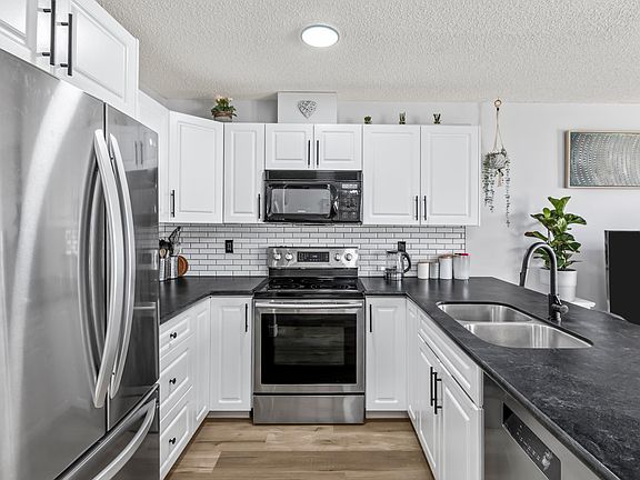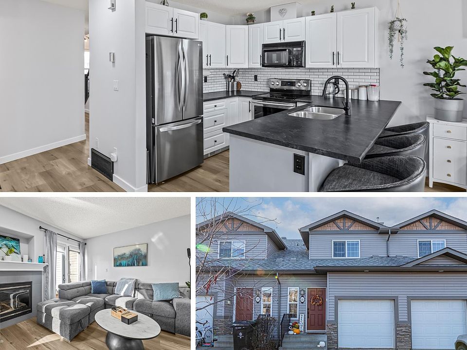 Wake up to modern style and easy living in this beautifully updated 3-bedroom, 2.5-bath townhouse in Westpark, Fort Saskatchewan. Every detail has been refreshed with Macchiato Caffe engineered luxury vinyl plank flooring (2024), new baseboards, light fixtures, hardware, and paint for a clean, contemporary look. The open main floor connects a bright kitchen with new stainless appliances (fridge and dishwasher 2022) to a welcoming living area featuring a gas fireplace and access to your private deck. Upstairs, the primary bedroom includes an ensuite and custom closet, while two additional bedrooms offer space for family or guests. The attached single garage adds convenience, with extra storage and driveway parking. Set in a quiet neighborhood close to walking trails, green space, and local amenities, this move-in-ready home blends comfort, value, and a fantastic location, ideal for first-time buyers or investors alike.