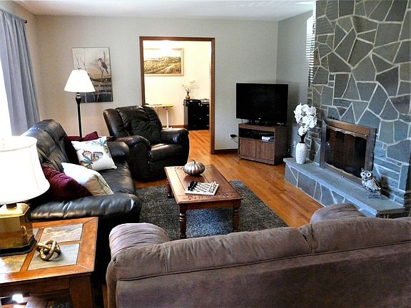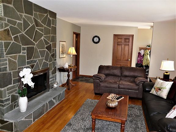 Location location location! This 4 bedroom, 2 bath ranch home has a large yard for the kids to roam and is on a cul-da-sac drive. Slate floor in entry, Spacious kitchen with Brookhaven cabinets. Kitchen opens to a family room with fireplace. Large living room with fireplace and dining room. Master bedroom has full bath. Covered back patio with fieldstone looks over the backyard. Full LL could easily be finished, attached 2-car garage, and shed. The garage is finished and has steps down to the lower level. Convenient to Park, Shopping, Elem. School, I86 & airport.