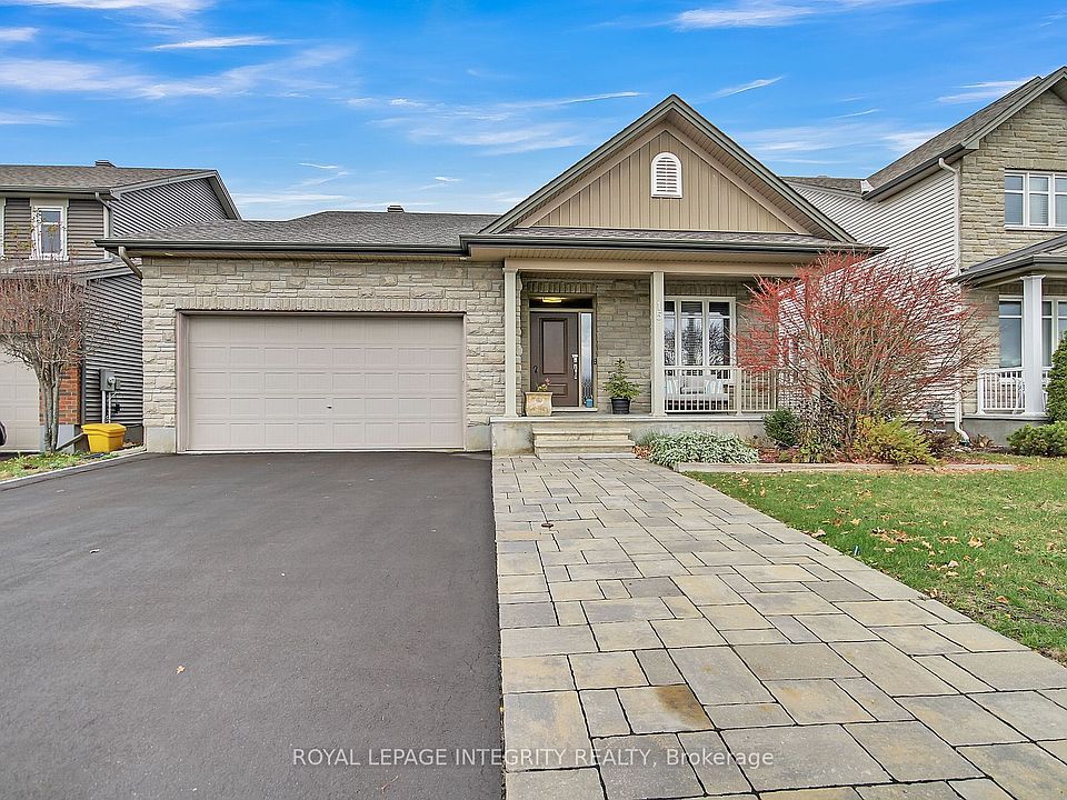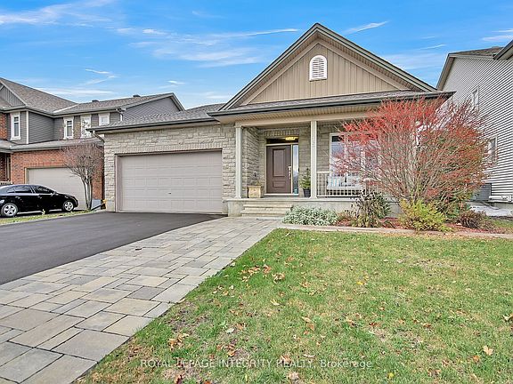 Welcome to this rare builders model home, thoughtfully upgraded and move-in ready for today's modern lifestyle. Located in a highly sought-after, family-friendly neighbourhood, this beautifully maintained bungalow offers 2+1 spacious bedrooms, 3 full bathrooms, and a bright open-concept design perfect for everyday living and entertaining.The sun-filled living room boasts oversized windows, pot lights, and a cozy gas fireplace, blending warmth and elegance for both relaxing and hosting. The chef-inspired kitchen features quartz countertops, abundant cabinetry, and expansive prep space - ideal for cooking, entertaining, and creating lasting memories. Retreat to the luxurious primary suite with a walk-in closet and spa-like ensuite with double vanity, balancing comfort and style. The fully finished lower level includes heated floors in the bathroom and a full bath, offering versatile space for a recreation room, guest suite, home office, or potential in-law suite.Additional highlights include a 2-car attached garage, extra surface parking, and a landscaped yard. With schools right across the street, this property is perfect for small families. All this just 30 minutes from downtown Ottawa, with quick access to parks, shopping, and transit.This exceptional home is ideal for families, downsizers, or investors seeking a high-quality property in a prime location.