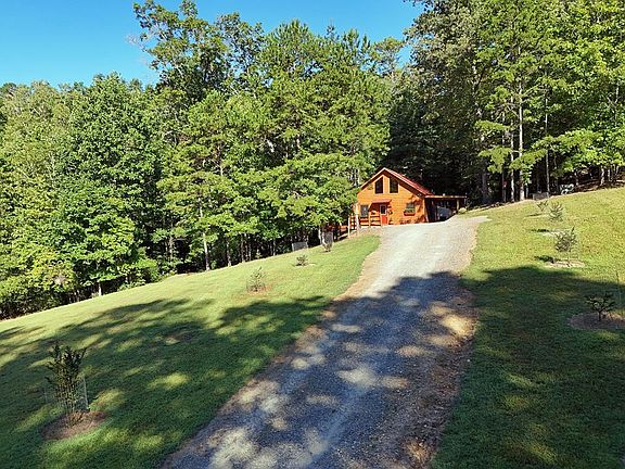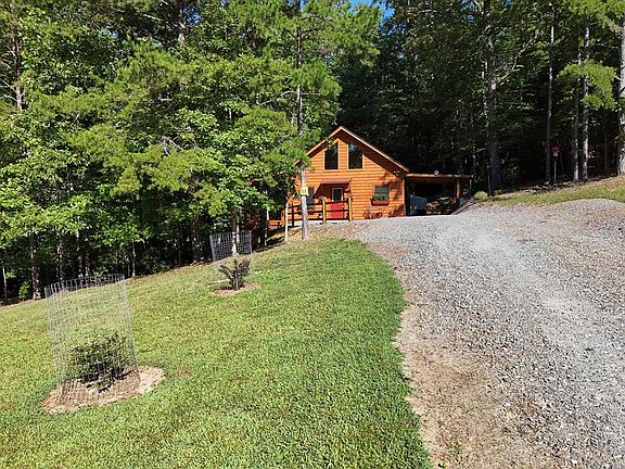 Prepare to fall in love! This beautiful, turn-key, log cabin is move-in or STR ready - fully furnished and impeccably maintained, you will relax the minute you walk through the door. Minutes from all of the conveniences and entertainment that Murphy has to offer, but so peaceful and quiet. Enjoy the wildlife and new landscaping from the spacious covered front porch, or step out onto the flagstone patio to sit around the firepit. Single-level living features a timeless, well-designed kitchen with granite countertops and handy built-in pantry cabinets, overlooking the sunny dining nook and vaulted family room with gas log fireplace. The primary suite can comfortably fit king-sized furniture and has a private bath. Spacious secondary bedroom across from the guest bath and laundry - stackable washer/dryer will stay! Convenient carport for parking close to the front door, plus ample storage in the attic and the backyard shed. Very usable yard with room to expand your outdoor enjoyment. Less than 10 minutes from Nottely Dam boat ramp and recreation area. Minimal restrictions, and fee covers community well and road maintenance. Easy drive in, no steep mountain roads!