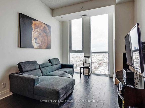 Gorgeous Lower Penthouse Unit with high-level unobstructed view. Suite comes with two large bedrooms, two full baths, 10 10-foot ceilings, 773 sq ft + Balcony. Both bedrooms feature floor-to-ceiling windows. Steps to Public Transit, 2 Min Drive to Gardiner Expy, Access to QEW & Hwy 427. 5 Min Drive to Ikea and Costco. Including 1 Parking Space. Amenities: Indoor Pool, Gym, Playground, Media Room, Terrace. No Pets & Non-Smokers A Must.