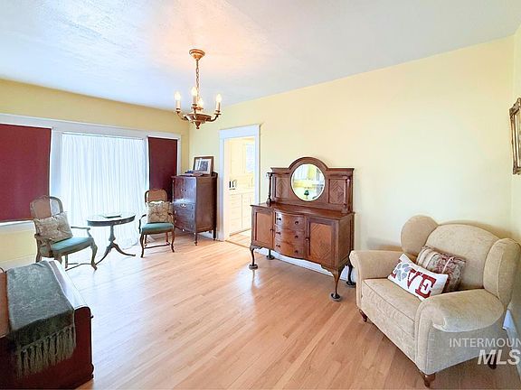 Welcome to this charming vintage home, filled with warmth and character! Featuring 3 bedrooms, 1 bathroom, and 1244 sq ft of inviting living space, this home offers beautiful hardwood floors, a cozy wood-burning fireplace, and fresh exterior paint that enhances its classic appeal. The unfinished basement provides exciting potential for additional living space or abundant storage, giving you plenty of room to grow and make it your own. Enjoy relaxing on the cute front porch or unwinding in the private backyard. Located just minutes from downtown Twin Falls, close to shopping, dining, and local amenities. This home radiates love and comfort the moment you step inside, and its timeless charm is ready for its next chapter!