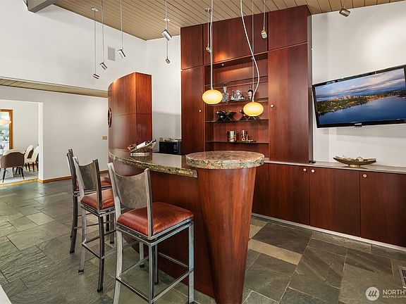 This beautiful, elegant central Bellevue home sits on the 7th Fairway of Glendale Golf Course redesigned by SKB Architects. Lovely 2,140 square foot ranch has amazing design blending midcentury Architecture with Modern creating a uniqueness in style and flow. Private primary suite with high ceilings and windows looking towards the jacuzzi and golf course. The Primary Bath has a Japanese soaking tub, steam shower and connects to a spacious closet area. Gourmet kitchen with high end appliances, custom cabinets with Richlite Countertop was featured in Seattle Home Magazine. Spacious living room with high end designed bar. Backyard is entertainers dream with Jacuzzi, LED lighted sports court with Golf Cart Garage that has access to Glendale.
