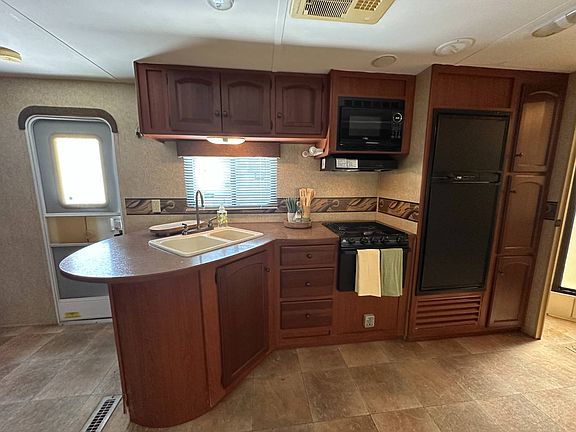 Located in the All-Age community of Bedrock River Haven, this well-maintained 2012 Dutchmen travel trailer features an inviting open layout with a combined living and kitchen area. Tiny home living at its finest! The kitchen comes equipped with a stove, refrigerator, and microwave, while the cozy sleeping area accommodates a queen-size bed. The bathroom includes a stand-up shower, vanity sink, and a separate toilet. With built-in storage throughout, staying organized is simple and stress-free. Community amenities include a clubhouse, picnic area, and the onsite Famous Fish House restaurant. Just minutes from Bahia Beach, shopping, dining, and more. Schedule a showing today! Bedrock River Haven is an All-Age community in Ruskin, Florida. Situated in a quiet neighborhood on Shell Point Road near Little Harbor, River Haven is only one street from Little Manatee River, which provides convenient access to some of Florida's best fishing, and some of the best boating in Tampa Bay. Just next door our residents enjoy the local area gem known as The Fish House, where fried seafood is plentiful and can be enjoyed outdoors, picnic-style, or taken back home. Our quaint neighborhood consists of 59 home sites, including 2 RV sites available for seasonal or full-time residents. Welcome home to our tiny Tampa Bay oasis!