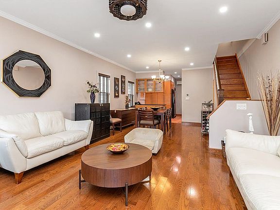 Meticulously maintained modern Colonial is a true treasure. Bright and airy, Southern Exposure with generous natural light located in the heart of Whitestone. Open concept offering a large living room, formal dining room with beautiful hardwood floors, crown molding, ductless HVAC and smart thermostat heating throughout. Eat-in kitchen boasts custom cabinetry, glass tile backsplash, granite countertops, ceramic tile floor and more. Second floor features 2 bedrooms with custom closets and crown molding, den/bedroom, renovated full bathroom. Third floor walk-up features 1 finished room/bedroom with lots of closet space. Full finished basement features family room, 1 full bathroom/laundry, storage room and boiler room. Beautiful front and back rock gardens offer tranquility and low maintenance complete with in-ground sprinkler system and raised flower beds. A must see!