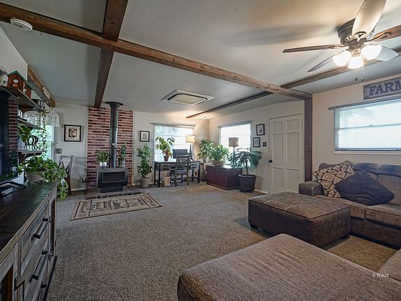 Corner Lot Curb appeal 2/1 w/ alley access & garage-fenced! REDUCED! GREAT CURB APPEAL! This darling 2 bed,1 bath corner lot home sits on upside of the road, fully fenced & has alley access to backyard w/ garage! The front walkway leads you up through the manicured lawn to brick planters lined w/varies colored roses and front covered porch. As you enter the home, you are pleasantly surprised on the openness & space of the living room, which was originally a 3rd bedroom, but has been removed for larger living space. The living room has nice charm w/ carpet, wood beams, a cozy wood stove & opens up into a big bright kitchen w/ wood-like laminate flooring, db windows, white cabinets & tile counters & backsplash & has plenty of room for a dining room table. Off the Kitchen you'll find an over-sized utility room w/ w/d, shelves, plenty of storage and access into the backyard. Down the hall from the living room is a full bath and, on either side, sits the two cozy bedrooms w/ built-in storage and ceiling fans. In addition to the wood stove & electric wall heaters, a ceiling mini-split unit is installed to keep you very comfortable year-round. A big bonus here is the back yard w/ covered patio, fenced off garden area & detached garage w/1/2 bath