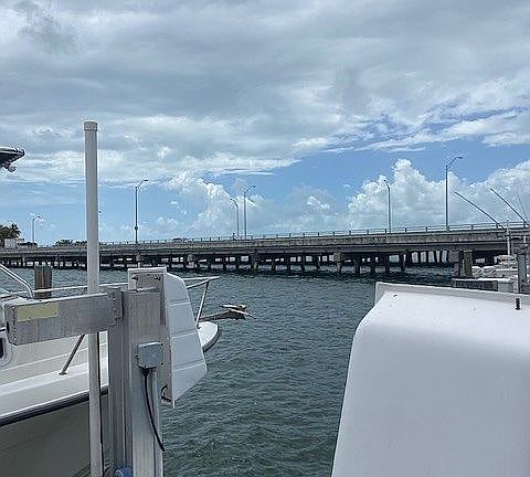 One of a few docks with a lift located at the entrance of Key Biscayne across the street from soon to open Una Residences.