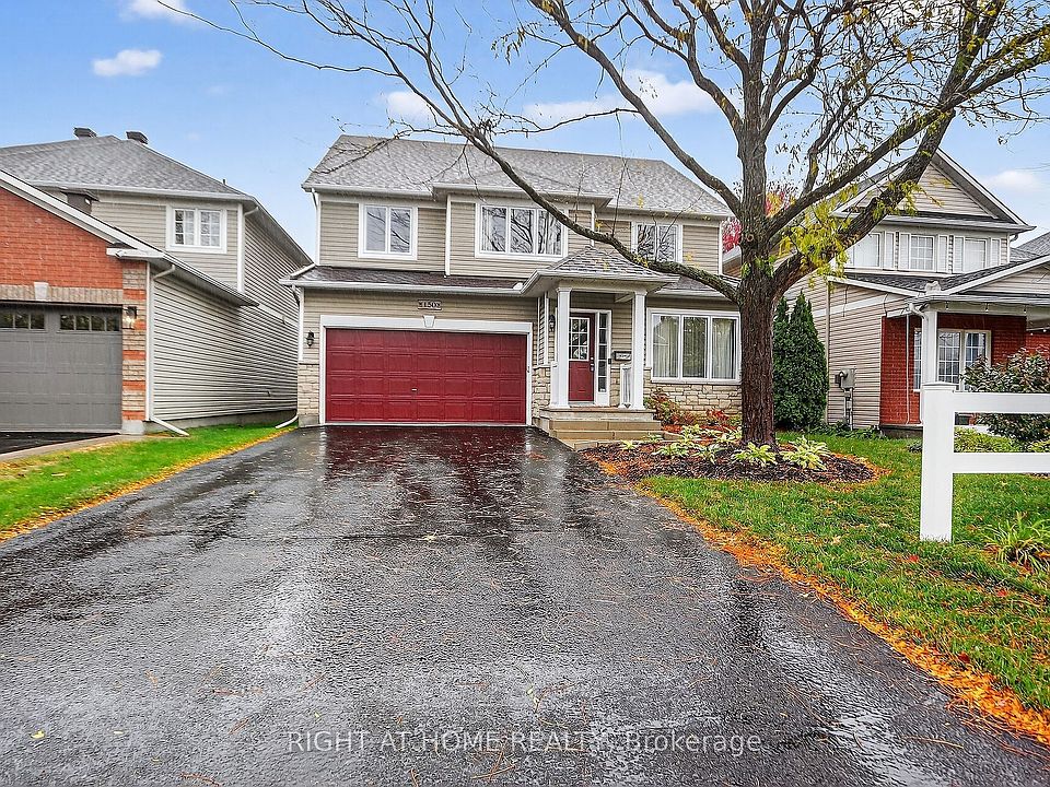Welcome to this beautifully maintained 4-bedroom, 3-bathroom detached home in the heart of Stittsville! Featuring a bright and sunny living and dining area, this home boasts a spacious kitchen that opens to a cozy family room with a gas fireplace-perfect for everyday living and entertaining. Upstairs, you'll find four generously sized bedrooms, including a massive primary retreat complete with a walk-in closet and a luxurious ensuite featuring a soaker tub and separate shower. The basement offers a large space to spread out and enjoy as a playroom, home office, gym or TV room to hang out with friends. Freshly painted with new carpet in the family room, this home is move-in ready. Major updates include: roof (2018), windows (2022), furnace (2021), composite deck with retractable awning (2024), and lawn irrigation system (2024), purchased on demand hot water heater (2024). Located close to shopping, transit, Hwy 417, and great schools. Don't miss the full list of upgrades on the feature sheet. This is a must-see!