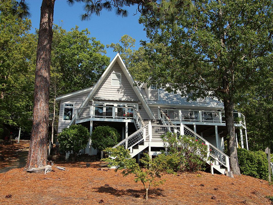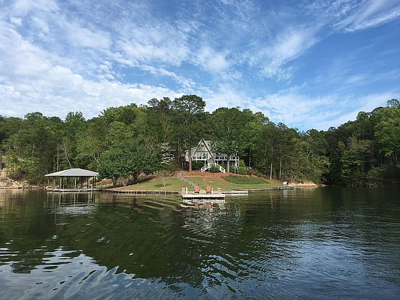 Commanding views with amazing sunsets on this estate lot on Pace's Peninsula. Beautifully updated cabin featuring hardwood floors, antique heart pine beams, metal roof, kitchen with granite & stainless. Main level: Master bedroom, 1 guest bedroom (now an office) & 2 baths. 2nd floor has 2 bedrooms, sitting room and full bath. Property heavily wooded for privacy, w/paved drive, open deck, gazebo, pier & floating dock, boathouse w/2 slips & double lifts. 1.25 acres and 451 feet of shoreline. Owner/agent.