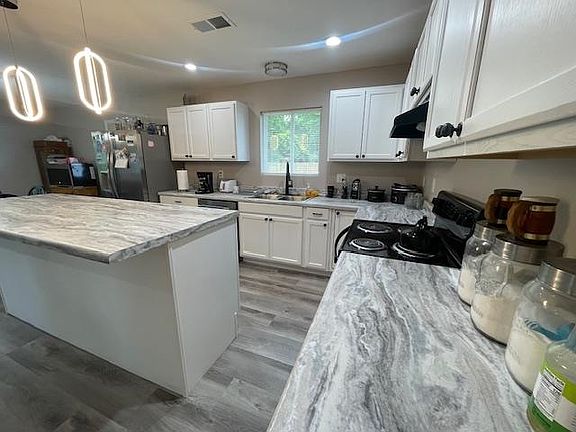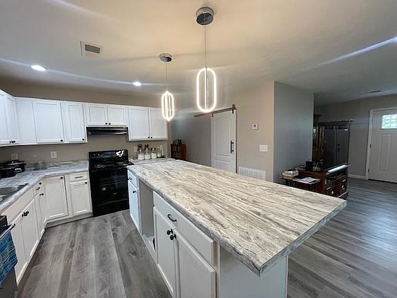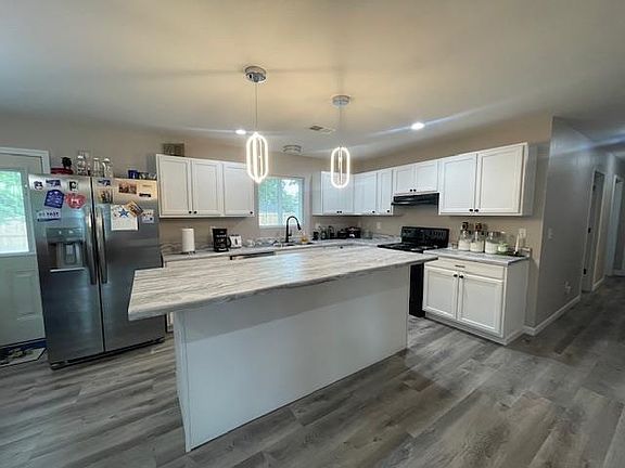 New home constructed in 2022. Open floor plan features 3 bedrooms, 2 baths, large living room, kitchen and eat-in area. Kitchen has lots of cabinets for storage and a large center island. Laundry room and master bathroom have custom barn doors. Master bath has a tiled bathtub/shower, lots of counter space and a spacious walk-in closet. Nice level lot with a 20x24 double garage.